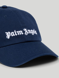 CAP IN BLUE WITH "PALM ANGELS" LOGO EMBROIDERED IN WHITE ON FRONT. ADJUSTABLE CINCH STRAP AT BACK. FABRIC 100% COTTON PRODUCT ID: PMLB003C99FAB0014601