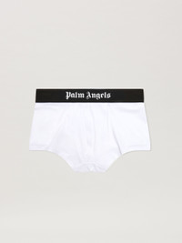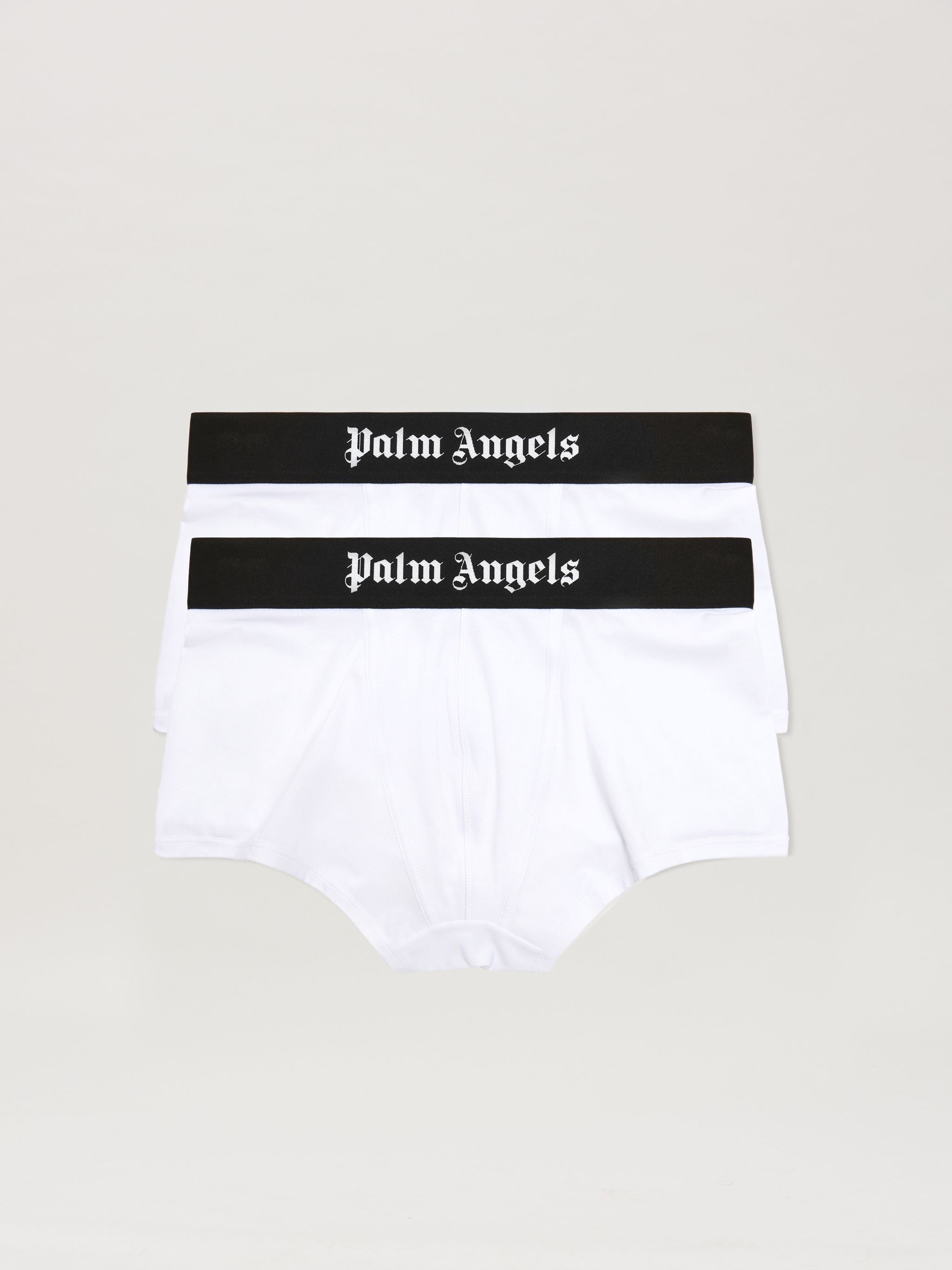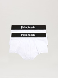 BOXER BIPACK IN WHITE COTTON. BLACK ELASTICIZED WAISTBAND WITH "PALM ANGELS" LOGO EMBROIDERED IN WHITE. REGULAR FIT. FABRIC 94% COTTON 6% ELASTAN PRODUCT ID: PMUH001C99FAB0030110