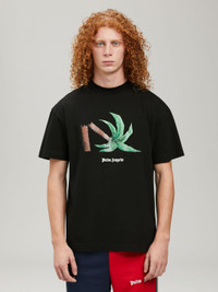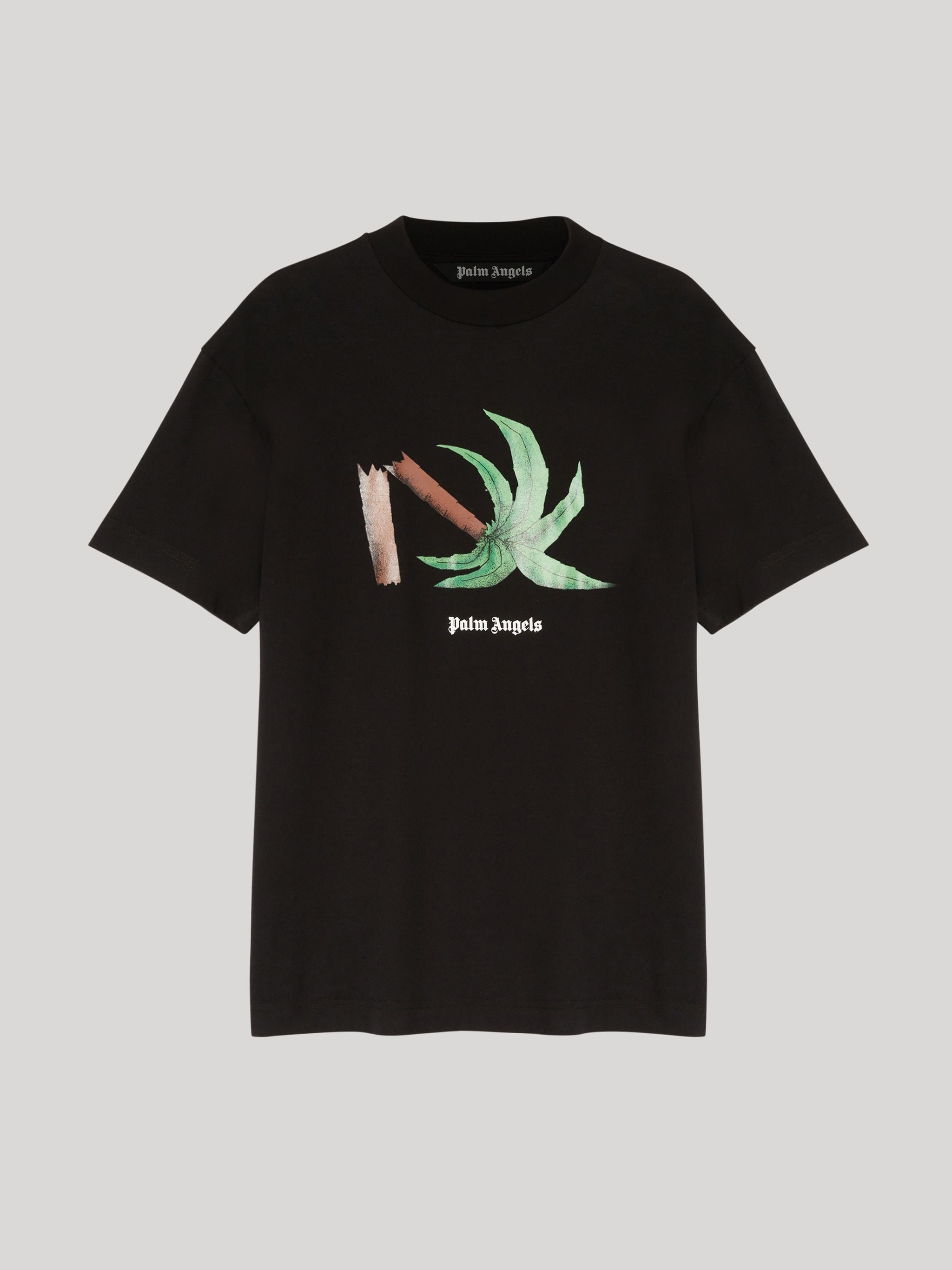 SHORT SLEEVES T-SHIRT IN BLACK WITH BROKEN PALM GRAPHIC PRINTED AT FRONT. "PALM ANGELS" CURVED LOGO PRINTED IN WHITE AT FRONT AND AT BACK. CREWNECK COLLAR. FABRIC 100% COTTON PRODUCT ID: PMAA001C99JER0131055