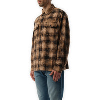Long Sleeve Curved Logo Check Shirt in Brown/Off White