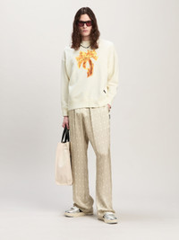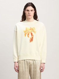 One of the recurring motifs connecting the seasons, the burning flames, returns in a gold version and wraps also the gothic logo. Men's crew-neck over-fit sweatshirt with burning flame palm printed in gold on the front and vertically printed Palm Angels logo with flame effect on the back. LORENZO WEARS SIZE M HEIGHT: 6' 2" (189 CM) BUST: 36" (92 CM) WAIST: 28" (71 CM) HIPS: 34"" (86 CM) PRODUCT ID: PMBA026F24FLE0100376