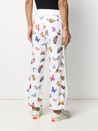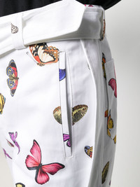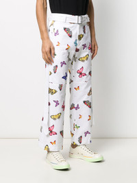 butterfly print straight trousers Do you remember when Mariah Carey went through that "butterfly" phase? We sure do. If you can't help but relate, the relaxed fit on these white cotton butterfly print straight trousers from Palm Angels in line with those magical little creatures will make your day. So spread your wings and fly. Highlights - White - Cotton - Multicoloured butterfly print - Belt loops - Front button fastening - Belted waist - Two side pouch pockets - Cropped leg Made in Italy Composition Outer: Cotton 100% Lining: Cotton 100% SIZE & FIT Model measurements Height 6 ft 2 in(1.87 m) Bust/Chest 38.18 in(97 cm) Hips 36.61 in(93 cm) Waist 29.13 in(74 cm) FittingInformation This piece fits true to size. We recommend you get your regular size Regular fit Made with a mid-weight non-stretch fabric Washing instructions Machine Wash