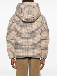 check-pattern hooded puffer jacket