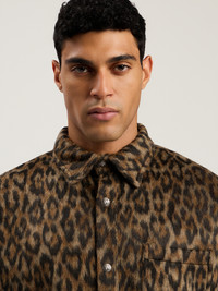 Embrace streetwise cool with this button-up overshirt featuring an allover animalier print, perfect for adding a bold edge to any look. - Allover animalier print for a striking look - Classic button-up design - Long sleeves with structured cuffs - Single chest pocket for added utility - Point collar for a refined finish DETAILS - 55% Acrylic 25% Polyester 20% Wool - Code: PMES002F25FAB0016003