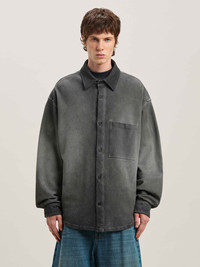 Functionality with a relaxed accent. Men's garment dyed black overshirt with front pocket and classic logo printed on the back. DETAILS - Manuel Wears Size 48 Height: 6' 1” (185 Cm) Bust: 34.5” (87 Cm) Waist: 26” (66 Cm) Hips: 33” (85 Cm) Embroidery 100% CottonFabric 100% Cotton - Code: PMES039S25FAB0011010