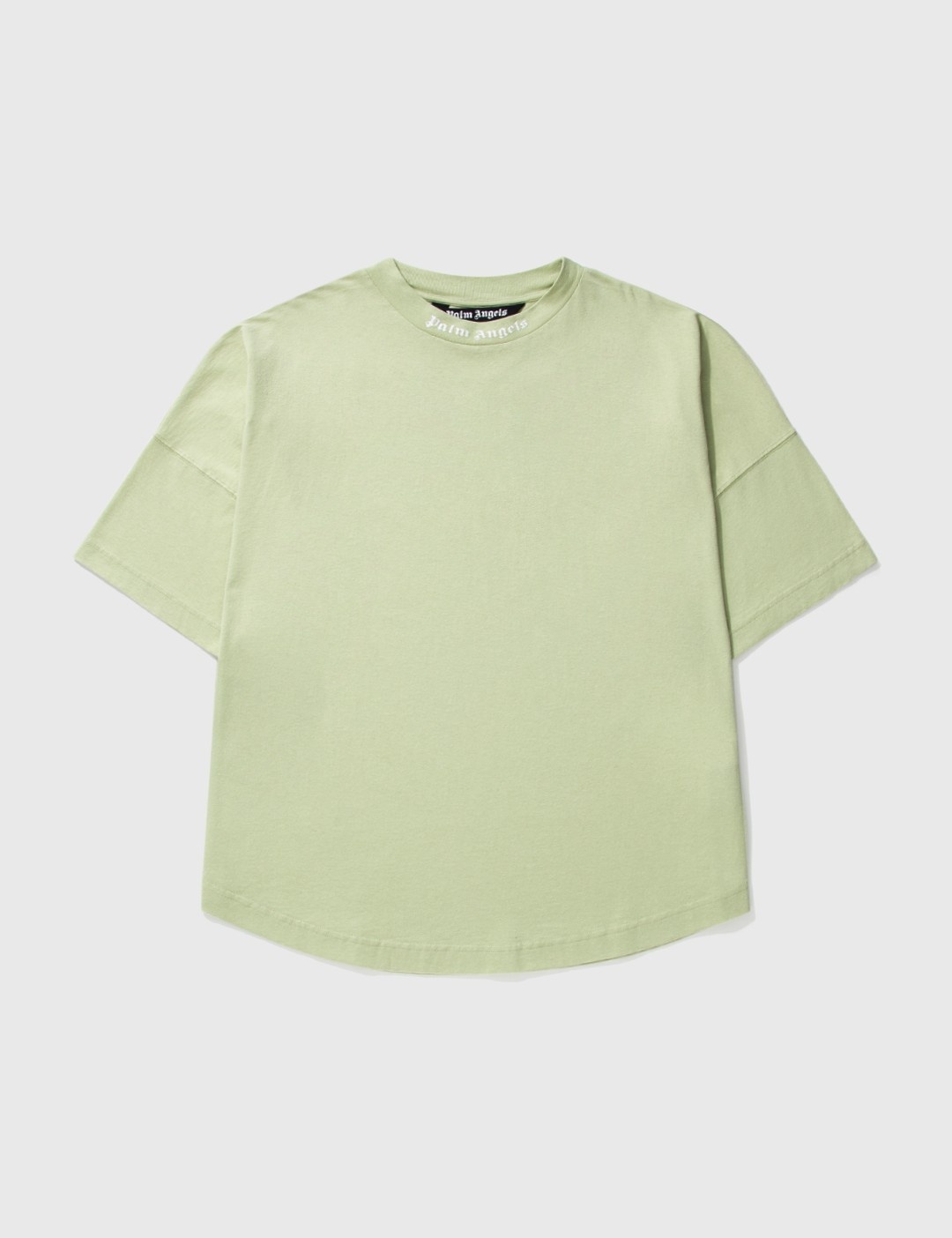 - Palm Angels - Classic Logo Oversized T-shirt - Short sleeve - Dropped shoulder - Ribbed mock neck with logo print - Oversized logo print at rear - Straight hem - Color: Mint/White - Material: 100% Cotton - See more SS T-Shirts, T-Shirts and Clothing SIZING - Model wears size M - Model measures: Height 190cm, Chest 34”/84cm, Waist 28”/70cm, Hip 35”/90cm