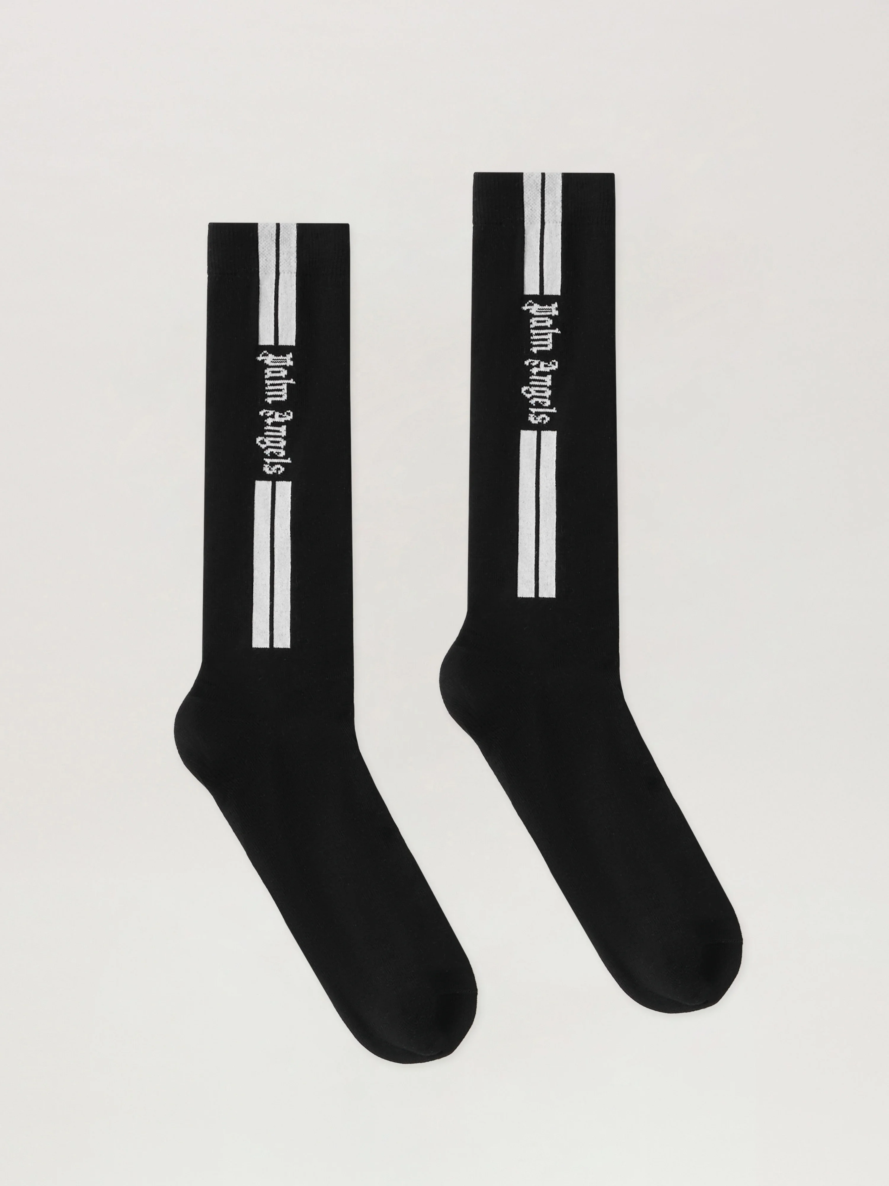 Knitted socks featuring bold logo detailing for a streetwise edge. - Bold logo detail - Ribbed cuffs for secure fit - Soft, knitted fabric - Mid-calf length DETAILS - 90% Cotton 5% Elastan 5% Polyamide - Code: PMRA00DF25FAB0011003