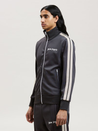 CLASSIC TRACK JACKET IN DARK GREY ACETATE FABRIC WITH WHITE "PALM ANGELS" LOGO PRINTED AT FRONT. RIB KNIT CUFFS, COLLAR AND HEM. FRONT AND POCKETS WHITE ZIP. ICONIC BLACK AND WHITE TAPEON THE SLEEVES. SLIM FIT. FABRIC 100% POLYESTER - LINING 100% POLYESTER - RIB DETAIL 4% ELASTAN 96% POLYESTER - DETAIL 100% POLYESTER MODEL KEVIN WEARS SIZE M HEIGHT: 6’1" (185 CM) CHEST: 33” (85 CM) WAIST: 28" (72 CM) HIPS: 36" (91 CM) PRODUCT ID: PMBD001F22FAB0020703