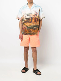 cotton-twill bermuda shorts Presented in the brand's fluorescent orange hue, these cotton-twill shorts from Palm Angels are subtly branded through the logo patch attached at the side seam. Made in Italy Composition Outer: Polyester 100%, Cotton 100% Lining: Cotton 100% SIZE & FIT Model measurements Height 6 ft 1 in(1.85 m) Bust/Chest 35.82 in(91 cm) Hips 37.79 in(96 cm) Waist 29.13 in(74 cm) FittingInformation This piece fits true to size. We recommend you get your regular size Designed for a slim fit at the waist and loose over the leg Made with a mid-weight non-stretch fabric Washing instructions Machine Wash