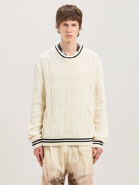 Curved logo cable sweater
