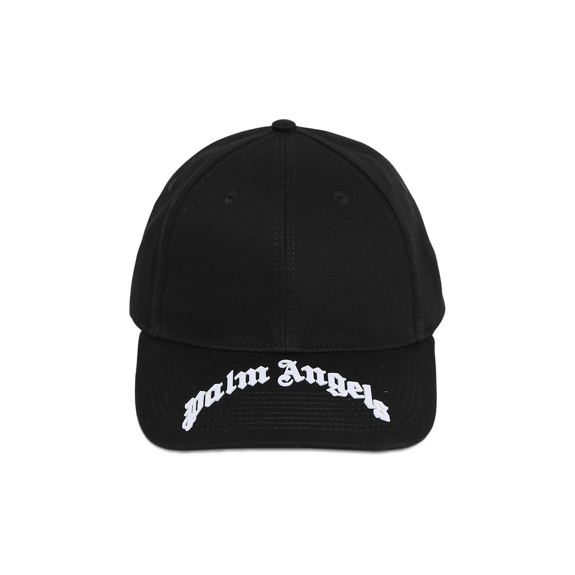 CAP IN BLACK WITH "PALM ANGELS" CURVED LOGO EMBROIDERED IN WHITE AT FRONT. ADJUSTABLE CINCH STRAP AT BACK. FABRIC 100% COTTON - LINING 100% COTTON - DETAIL 1 100% PLASTIC - DETAIL 10% POLYURETHANE 90% POLYESTER PRODUCT ID: PMLB053F22FAB0011001