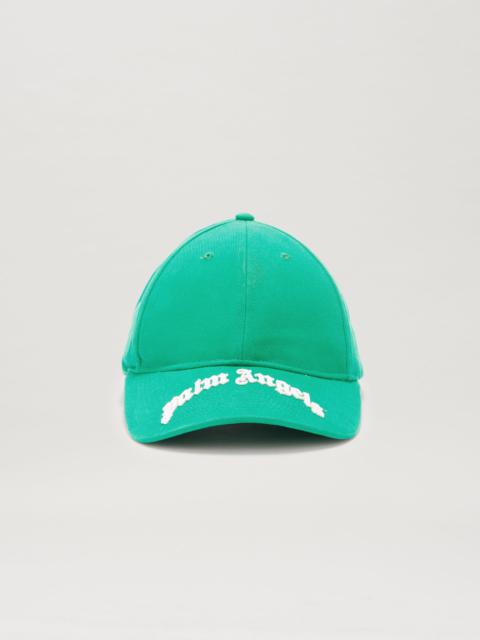 CAP IN GREEN WITH "PALM ANGELS" CURVED LOGO EMBROIDERED IN WHITE AT FRONT. ADJUSTABLE CINCH STRAP AT BACK. FABRIC 100% COTTON - LINING 100% COTTON - DETAIL 1 100% PLASTIC - DETAIL 10% POLYURETHANE 90% POLYESTER PRODUCT ID: PMLB053F22FAB0015501
