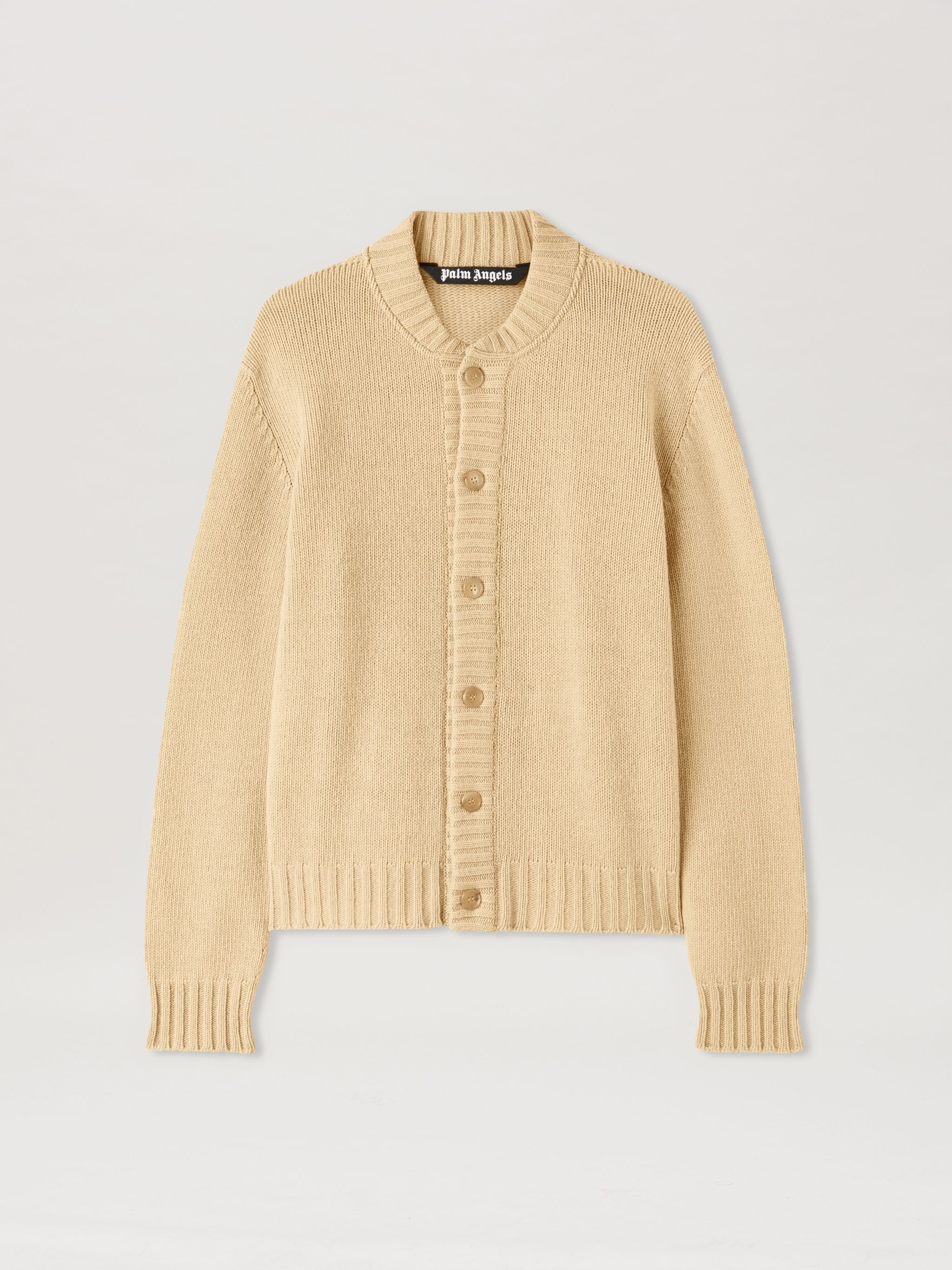 Contemporaray design and the ultimate comfort. Men's pink knit cardigan with round neckline, ribbed collar, cuffs, hem, and placket, button closure, and Palm Angels curved logo embroidered in white on back. Denzel wears size M Height: 6' 25" (190 cm) Bust: 36" (91 cm) Waist: 28" (72 cm) Hips: 35" (88 cm) PRODUCT ID: PMHB025C99KNI0016101