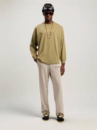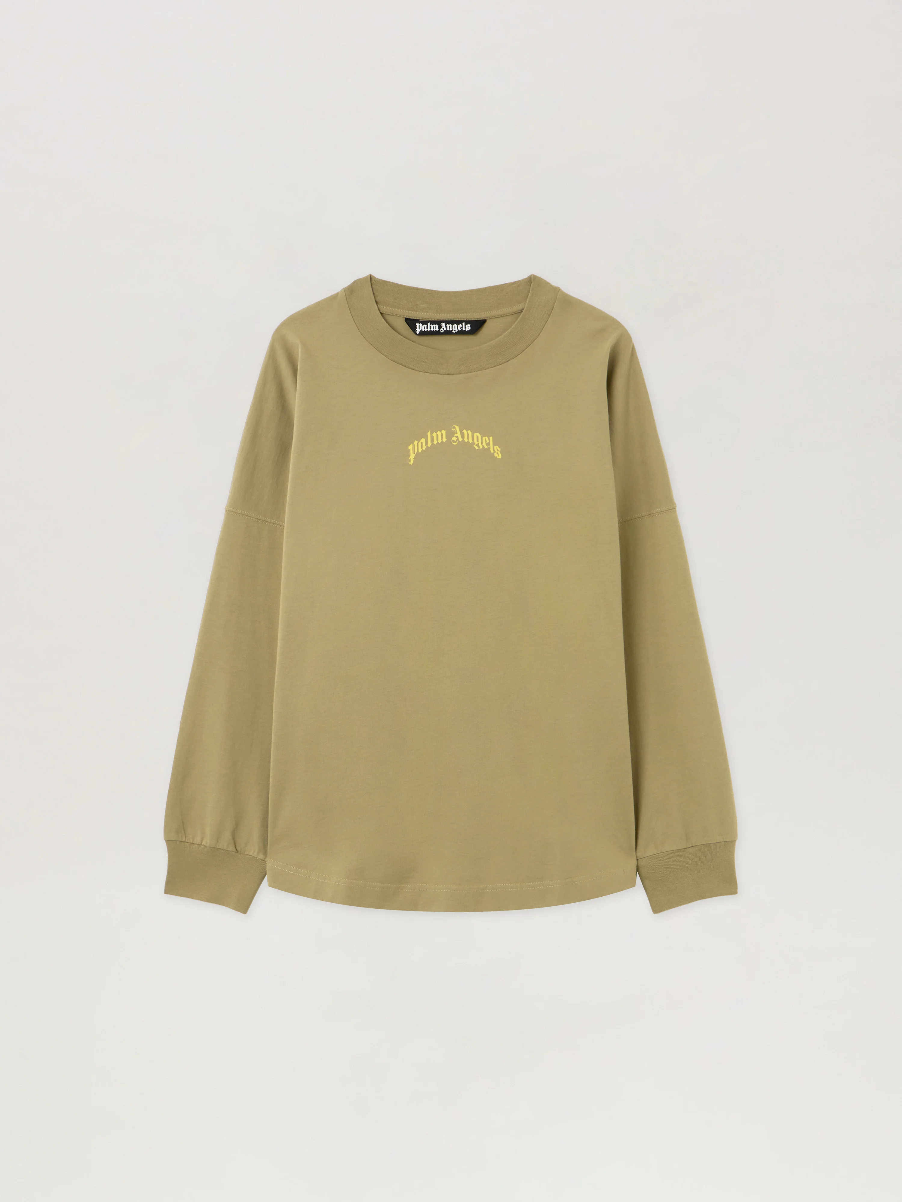 Oversized long sleeve T-shirt featuring the signature curved logo print across the back, crafted from soft cotton for a laid-back streetwear vibe. - Soft cotton construction - Oversized fit - Signature curved logo print on back - Classic crew neckline - Long sleeves - Ribbed cuffs DETAILS - 100% Cotton, Rib detail: 100% Cotton - Code: PMAB059F25JER0015818