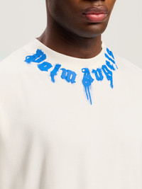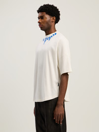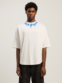 <p>Oversized cotton t-shirt featuring a curved logo print at the neckline.</p><ul type="circle"><li>Ribbed crew neck</li><li>Short sleeves</li><li>Wide silhouette</li><li>Logo motif at front</li></ul> DETAILS - 100% Cotton, Rib detail: 100% Cotton - Code: PMAA10BF25JER0060347