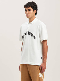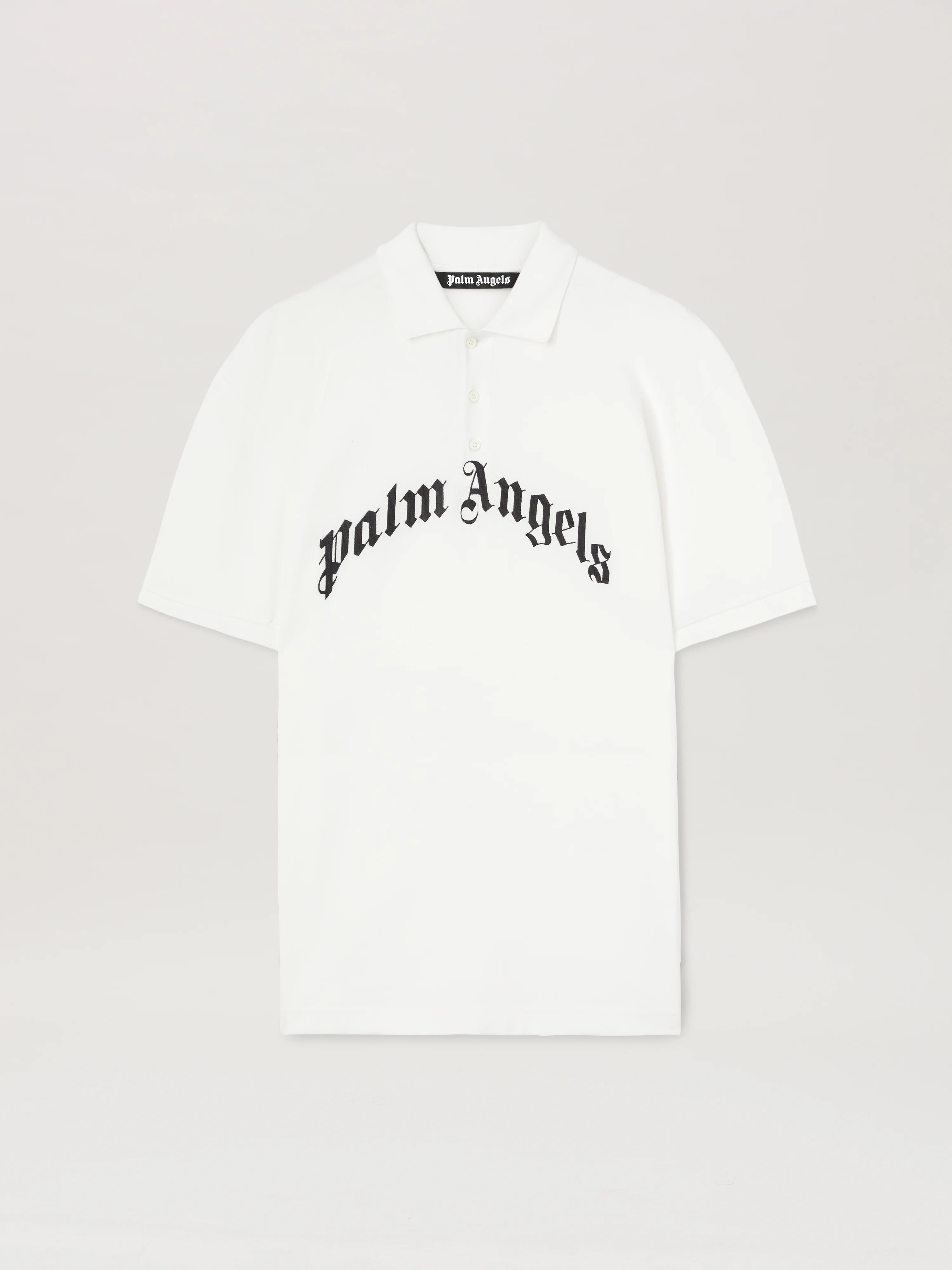 Logo mutations that turn a timeless icon into new seasonal graphic. Men's white polo shirt with Curved logo embroidered in black on center front. DETAILS - Salah Wears Size M Height: 6' 0” (183 Cm) Bust: 37.5” (95 Cm) Waist: 30” (76 Cm) Hips: 36” (91 Cm) Embroidery 100% PolyesterFabric 100% CottonRib Detail 100% Cotton - Code: PMGB012S25FAB0030310