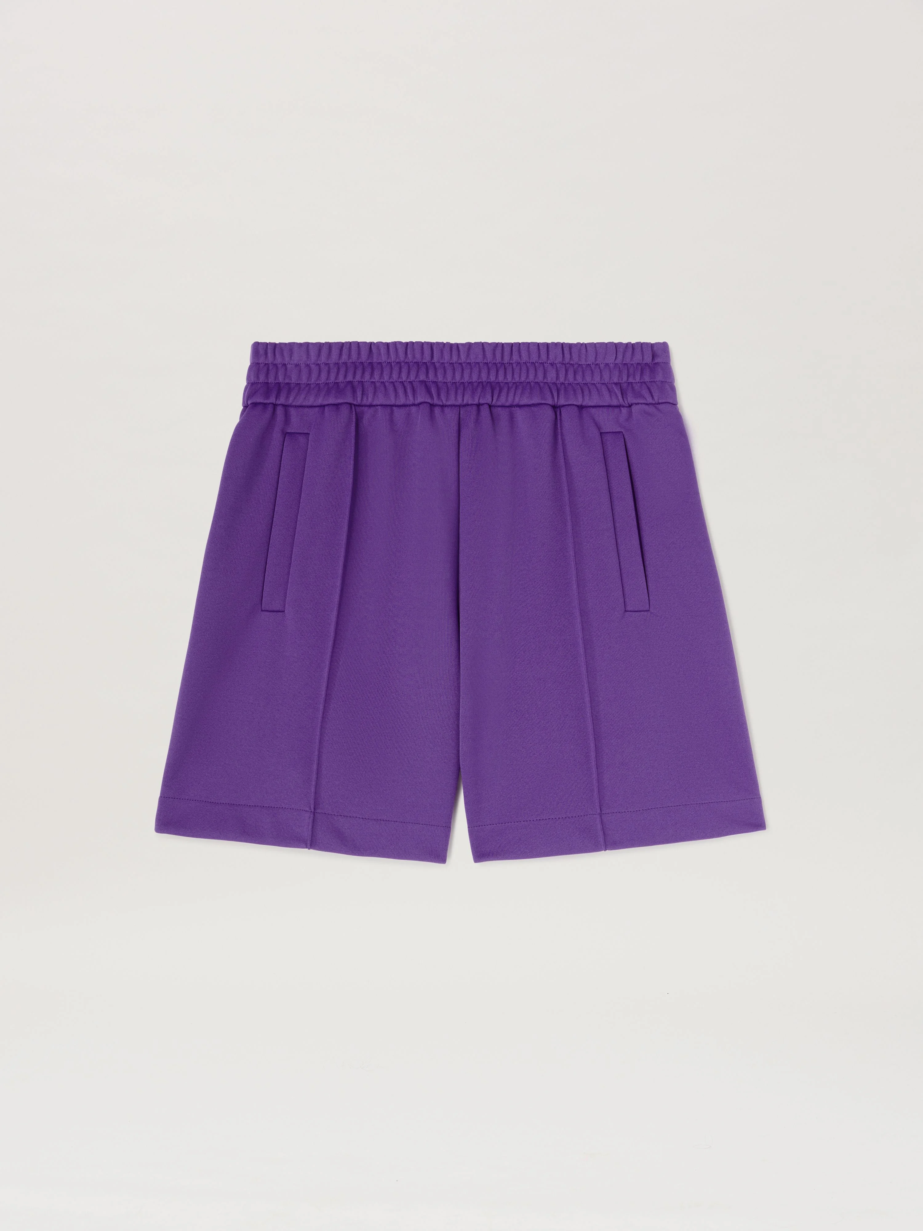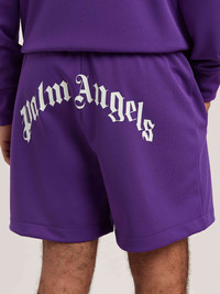 Palm Angels is a state of mind, the tracksuit its daily outfit. Men's purple track shorts with triple elastic waistband, iconic Tape on sides and Curved logo printed in white on the back. SALAH WEARS SIZE M HEIGHT: 6' 0” (183 CM) BUST: 37.5” (95 CM) WAIST: 30” (76 CM) HIPS: 36” (91 CM) PRODUCT ID: PMCL008S25FAB0013703
