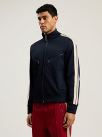 Elevate your streetwear game with this Curved Logo Zip-Up Track Jacket. Crafted for style and comfort, it features a sleek design and signature back logo detailing. - High-neck design with zip closure - Long sleeves with contrasting stripe detail - Front zip pockets for secure storage - Signature back logo for brand identity - Ribbed cuffs and hem for fit enhancement - Lightweight construction for all-day wear DETAILS - 100% Polyester, Fabric: 100% Polyester, Fabric: 100% Polyester, Lining: 100% Polyester, Rib detail: 96% Polyester 4% Elastan - Code: PMBD08HF25FAB0014903