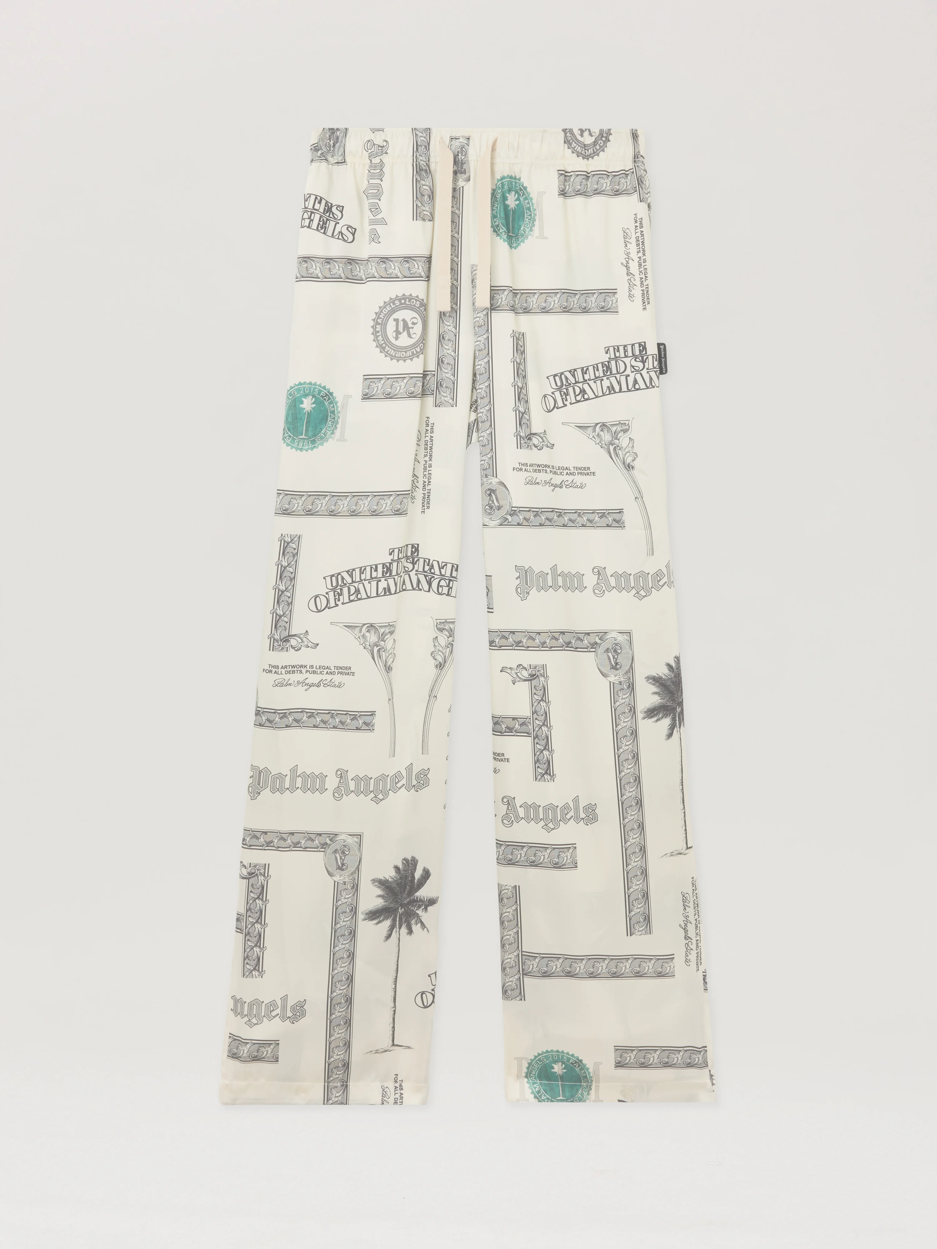 Wide-leg pants in a soft fabric featuring an all-over dollar print with a relaxed silhouette and elastic waistband. - All-over dollar print adds a unique and bold statement - Elastic waistband for a comfortable and adjustable fit - Wide-leg silhouette enhances streetwear style - Soft fabric ensures a relaxed and cozy feel - Back pockets for functional storage - Meticulously crafted for a refined streetwear aesthetic DETAILS - 100% Cotton, Fabric: 100% Polyester - Code: PMCA143F25FAB0010B10
