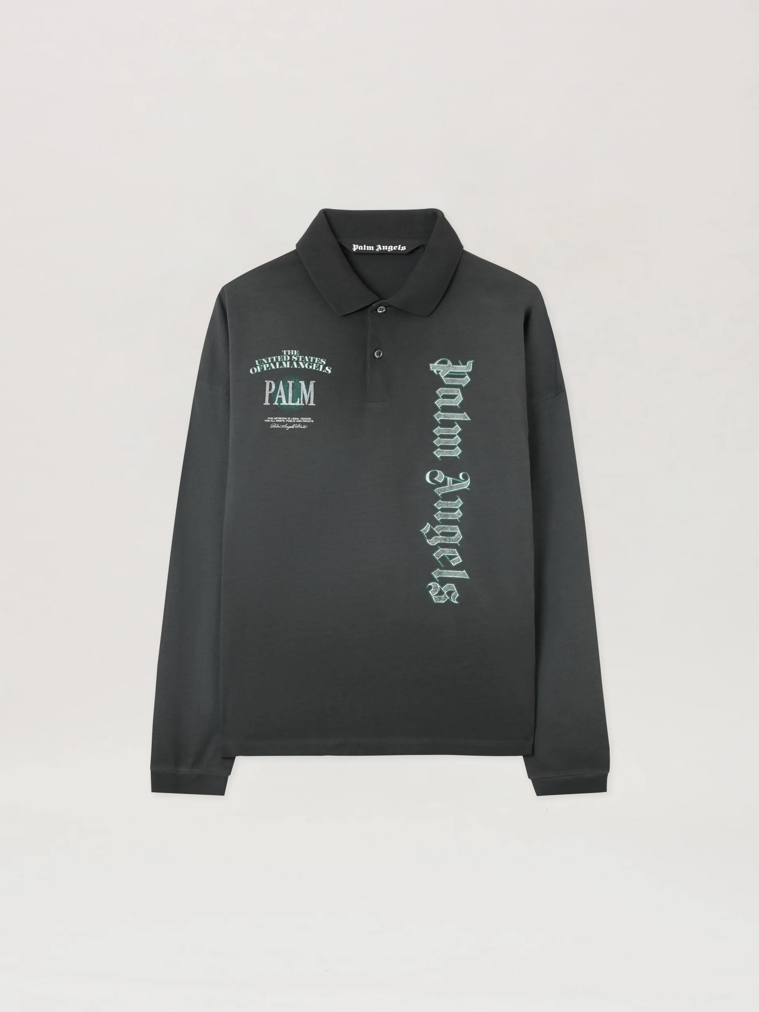 The Dollar Logo Long Sleeve Polo combines classic polo styling with streetwise graphics, crafted from premium cotton for a comfortable fit. - Ribbed polo collar with two-button placket - Long sleeves with ribbed cuffs - Contrasting vertical logo print on front - Embroidered text detail on chest - Straight hem with side slits - Soft, breathable cotton fabric DETAILS - 100% Cotton, Rib detail: 100% Cotton - Code: PMGC01CF25JER0011305