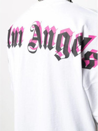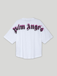 Bold minimalism. This oversized white t-shirt features the signature palm angels gothic logo at the collar, clean design with a streetwear twist. DETAILS - FABRIC 100% COTTON - RIB DETAIL 100% COTTON - Code: PMAA002C99JER0080132