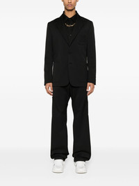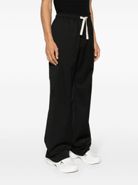 drawstring-waist wide-leg trousers Understated and versatile, Palm Angels' Monogram trousers are presented here in black. They are enhanced with a drawstring waist for an adjustable fit and finished with contrasting monogram embroidery at the rear. Highlights - Black - Twill weave - Stretch-design - Elasticated drawstring waistband - Two side inset pockets - Two side button-fastening pockets - Two rear button-fastening pockets - Wide leg Imported Composition Outer: Polyester 55%, Virgin Wool 43%, Elastane 2% Lining: Polyester 100% SIZE & FIT Model measurements Height 6 ft 2 in(1.87 m) Bust/Chest 38.18 in(97 cm) Hips 36.61 in(93 cm) Waist 29.13 in(74 cm) FittingInformation Designed with a wide leg, offering a loose and roomy fit Adjust this piece’s waistband to your preference using the drawstring Made from a midweight stretch fabric, this piece offers elasticity and flexibility when worn This piece fits true to size – take your usual size