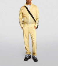 An instantly recognisable staple of Palm Angels' signature high-octane aesthetic, this zip-up track jacket hits the right note between athleisure and opulent luxe with carefully placed diamanté embellishments, in addition to the use of a classic striped trim. Pair it with the matching sweatpants for an eye-catching ensemble.How to wear Harrods: Style with a T-shirt, the matching sweatpants, sneakers and a cross-body bag. COMPOSITION - OUTER:100% Polyester - TRIMS:94% Polyamide - TRIMS:6% Elastane DETAILS - Regular fit - Specialist clean - Model wears a size M - Zip fastening