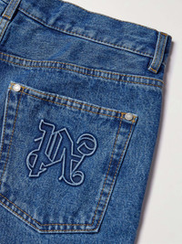 Although based in Milan, Palm Angels has a global appeal thanks to its Italian take on American subcultures. Based on carpenter trousers, these jeans are cut from denim in a roomy straight-leg fit. They have reinforced panels inspired by workwear and are embossed with the brand's distinctive lettering on the back pocket. Size & Fit - Fits small to size. Take one size larger than normal - Regular-straight leg, mid-rise style - Mid-weight, non-stretchy fabric - Model is shown wearing a 32 - Model measures: waist size 30, height 6'0"/ 183cm Details & Care - Blue denim - Button fastenings - 100% cotton; pocket lining: 65% polyester, 35% cotton - Machine wash