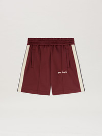 Palm Angels is a state of mind, liberating leisurewear from every convenction. Men's burgundy track shorts with triple elastic waistband, iconic Tape on sides and Palm Angels logo embroidered in white on front. SALAH WEARS SIZE M HEIGHT: 6' 0” (183 CM) BUST: 37.5” (95 CM) WAIST: 30” (76 CM) HIPS: 36” (91 CM) PRODUCT ID: PMCL004S25FAB0012803