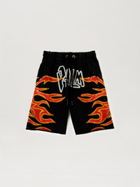 GARMENT DYE GRAFFITI FLAMES SWEATSHORTS