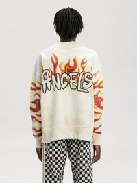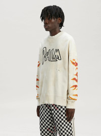 GARMENT DYE PALM GRAFFITI FLAMES SWEATSHIRT