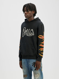 LONG SLEEVES HOODED SWEATSHIRT IN BLACK COTTON WITH GRAFFITI FLAMES GRAPHIC PRINTED IN ORANGE AT SLEEVES AND AT BACK. "PALM ANGELS" LOGO PRINTED IN WHITE AT FRONT AND TO THE REAR. KANGAROO POCKET. REGULAR FIT. FABRIC 100% COTTON - RIB DETAIL 100% COTTON - DETAIL 100% POLYESTER PRODUCT ID: PMBB117F22FLE0021001