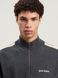 Refined knit track jacket featuring a sleek silhouette, complete with a sophisticated full-front zipper and distinctive logo detailing. - High-neck collar - Full-front zip fastening - Long sleeves with contrast stripes - Front slip pockets - Ribbed cuffs and hem - Embroidered logo on chest DETAILS - 100% Polyester, Fabric: 40% Wool 30% Viscose 20% Polyamide 10% Cashemere, Fabric: 100% Cotton - Code: PMHA063F25KNI0010703