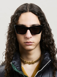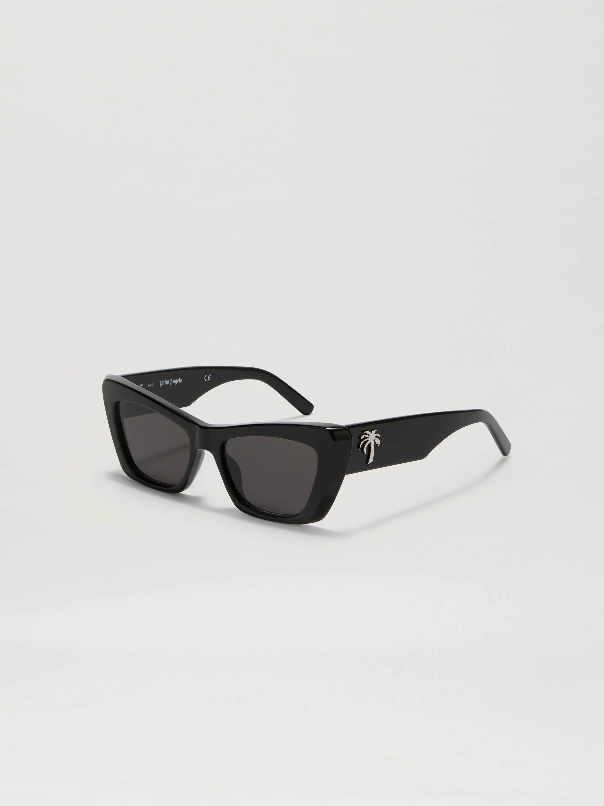 RECTANGULAR SUNGLASSES IN BLACK WITH BLACK LENSES. SILVER PALM TREE LOGO AT SIDES. MATERIAL 90% ACETATE 10% METAL PRODUCT ID: PERI012F22PLA0011007