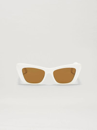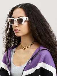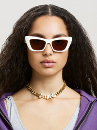 RECTANGULAR SUNGLASSES IN WHITE WITH BROWN LENSES. GOLD PALM TREE LOGO AT SIDES. MATERIAL 90% ACETATE 10% METAL PRODUCT ID: PERI012F22PLA0010160