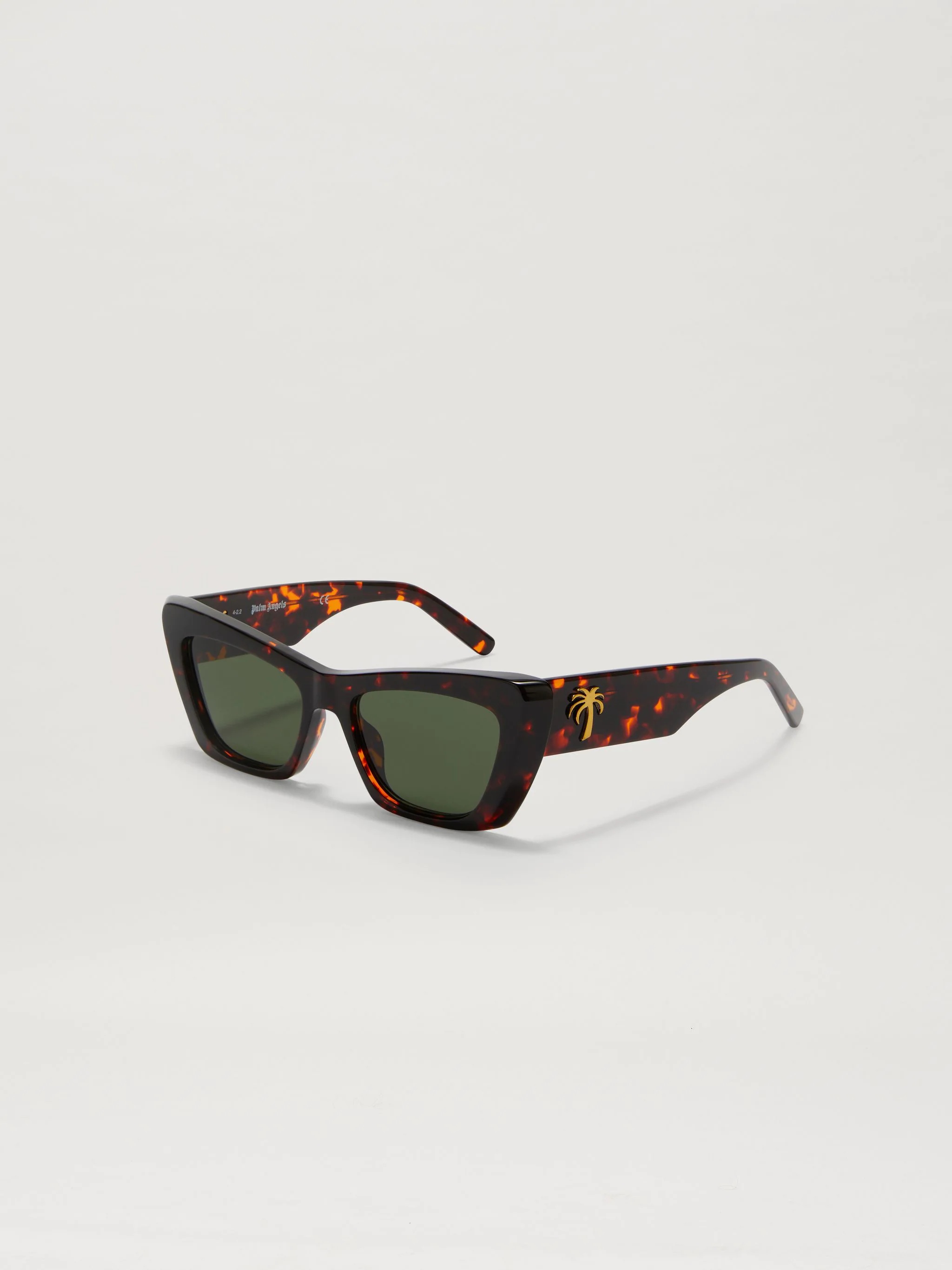 RECTANGULAR SUNGLASSES IN DARK BROWN WITH GREEN LENSES. GOLD PALM TREE LOGO AT SIDES. MATERIAL 90% ACETATE 10% METAL PRODUCT ID: PERI012F22PLA0016055
