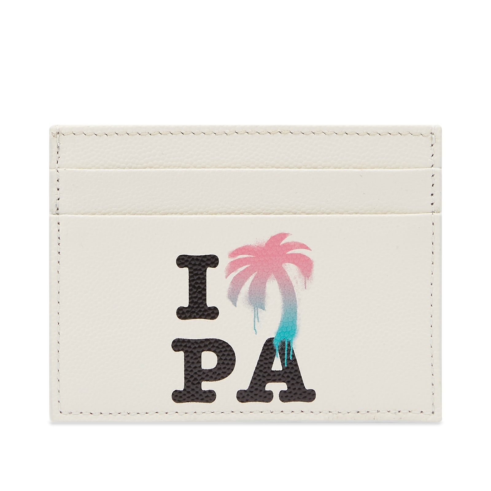 Beginning when Francesco Ragazzi started archiving photography from the LA skater scene, Palm Angels captures the Venice Beach culture through numerous gothic motifs. Crafted from leather, this cardholder is adorned with a seasonal ‘I Love PA motif’ a nod to its Californian roots. - Leather Upper - Note Compartment - Card Slots