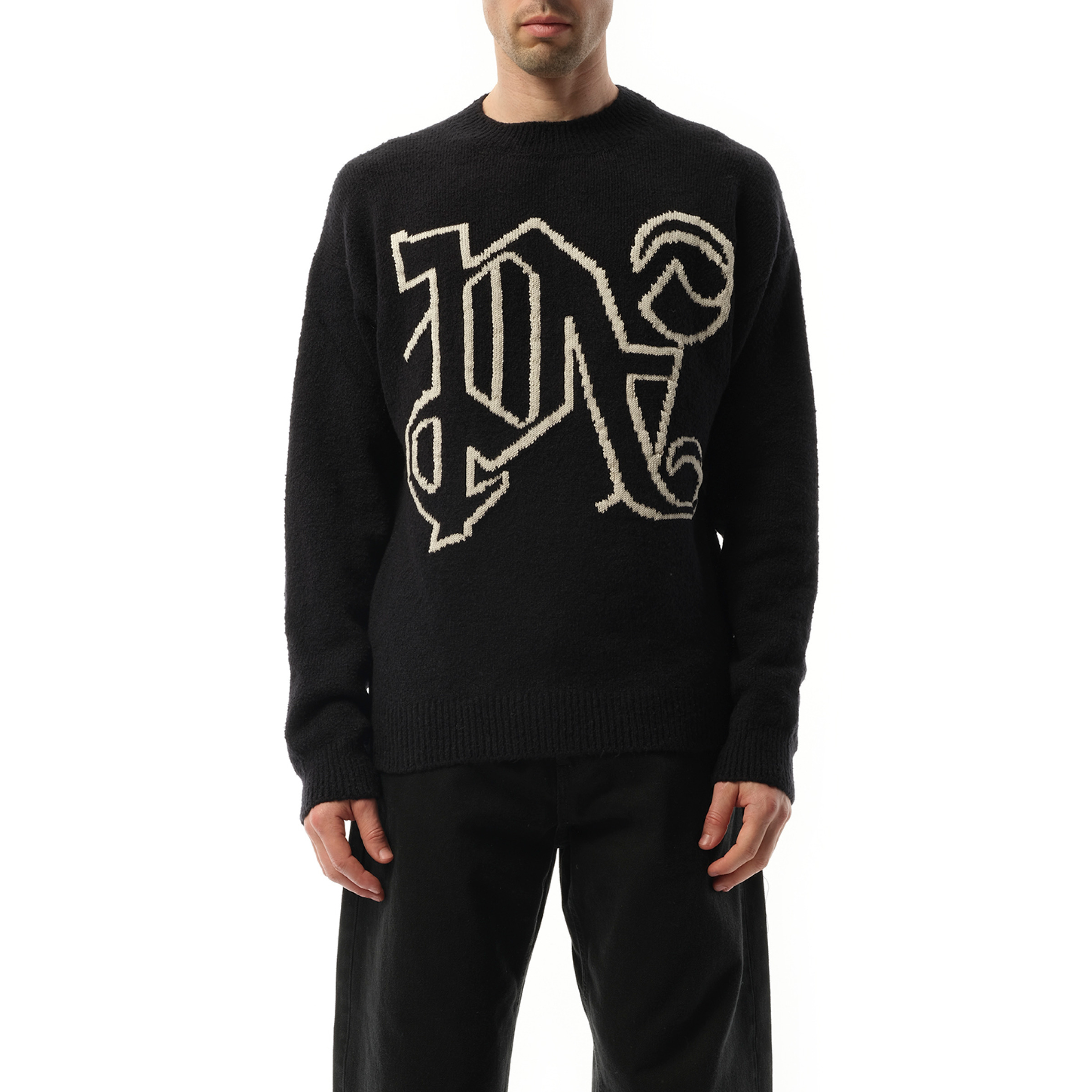 Made with high-quality materials and a classic design, this sweater is perfect for any occasion. The bold monogram adds a touch of sophistication while the black and off-white color combo is versatile and timeless. - Composition: 80% Cotton, 17% Polyamide, 3% Elastane - Knitted construction - Intarsia-knit logo - Ribbed cuffs and hem - Straight hem - Made in Italy Model is 192 cm and wears size M SKU: PMHE054F24KNI0011003