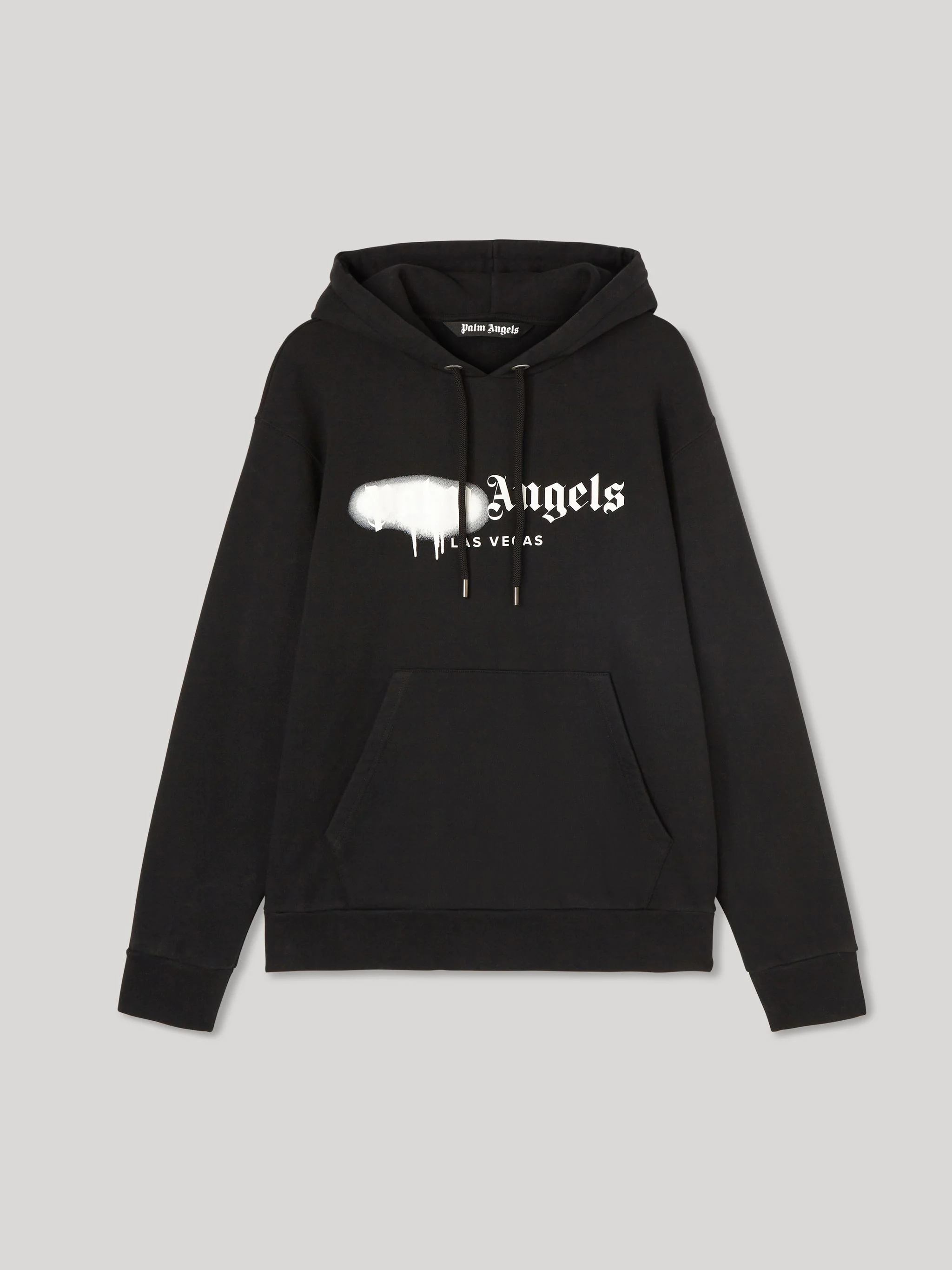 LONG SLEEVES HOODED SWEATSHIRT IN BLACK. WHITE SPRAYED PRINT AT FRONT. LOGO AND "LAS VEGAS" PRINTED IN WHITE AT FRONT. BLACK STRINGS. KANGAROO POCKET. FABRIC 100% COTTON MODEL NICCOLÒ WEARS SIZE M HEIGHT: 6'2 (187 CM) CHEST: 31" (80 CM) WAIST: 28" (72 CM) HIPS: 36" (91 CM) PRODUCT ID: PMBB003C99FLE0081001
