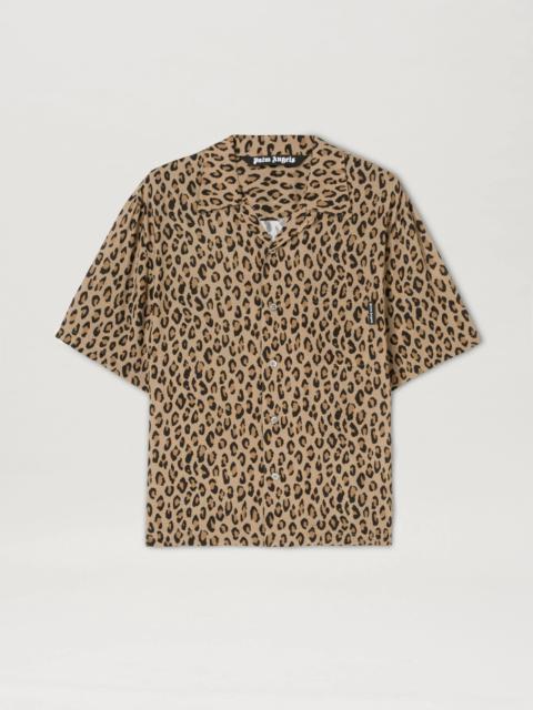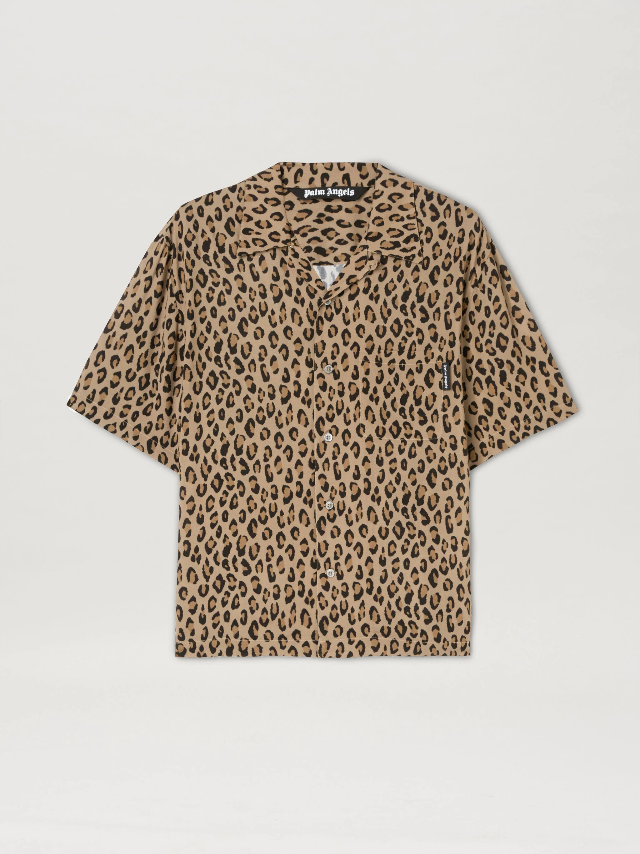 SHORT SLEEVES BOWLING SHIRT IN NUTS VISCOSE WITH LEOPARD GRAPHIC PRINTED ALL OVER. "PALM ANGELS" LOGO PRINTED IN WHITE AT BACK. SPREAD COLLAR, BUTTON CLOSURE, FRONTAL POCKET. REGULAR FIT. FABRIC 100% VISCOSE - DETAIL 100% POLYESTER PRODUCT ID: PMGA110F22FAB0056404