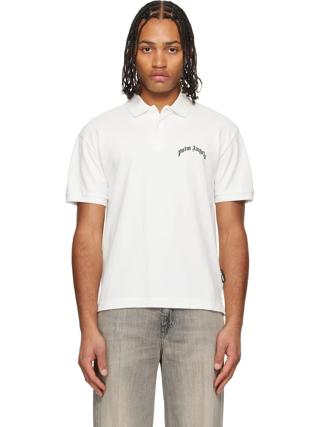 Cotton pique polo. · Rib-knit spread collar and cuffs · Two-button placket · Logo printed at chest and back · Tennis-tail hem Supplier color: Off-white/Black 100% cotton. Made in Turkey 252695M212000