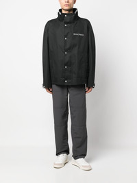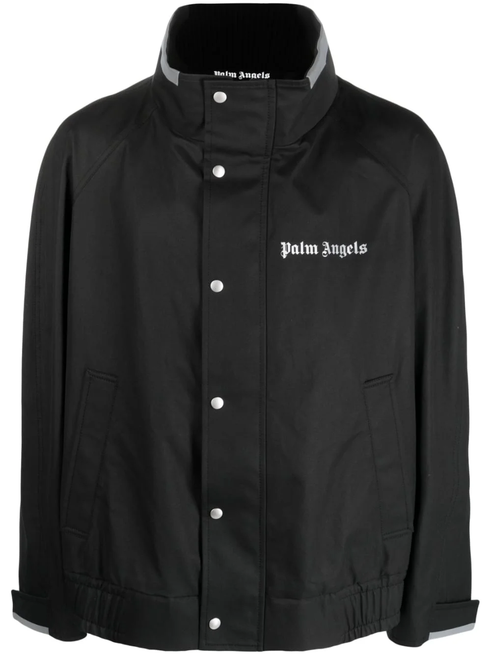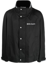 logo-print button-fastening jacket Tying in with contemporary branding trends this single-breasted jacket from Palm Angels features a contrasting logo print at the chest. Paired with the use of technical materials, the outerwear garment has a simultaneously utilitarian feel. Made in Italy Composition Outer: Cotton 100%, Polyester 100%, Polyamide 96%, Elastane 4% Lining: Polyamide 100% SIZE & FIT Model measurements Height 6 ft 1 in(1.85 m) Bust/Chest 35.82 in(91 cm) Hips 37.79 in(96 cm) Waist 29.13 in(74 cm) Washing instructions Machine Wash