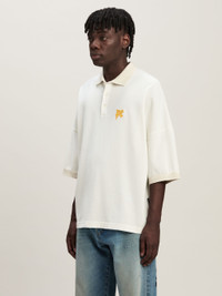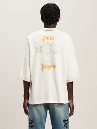 Themes from own imaginary with a pencil-like effect print sealed by an embossed logo. Men's white polo shirt with thick Monogram printed in light orange on the front and pencil effect angel printed on the back with logo Palm Angels in light orange printed with a sealing wax effect. Paolo wears size M Height: 6' 2" (188 cm) Bust: 34" (86 cm) Waist: 28" (72 cm) Hips: 36" (92 cm) Ebba wears size 48 Height: 5' 10" (178 cm) Bust: 31" (79 cm) Waist: 23" (60 cm) Hips: 35" (89 cm) PRODUCT ID: PMGB026F24FAB0030322