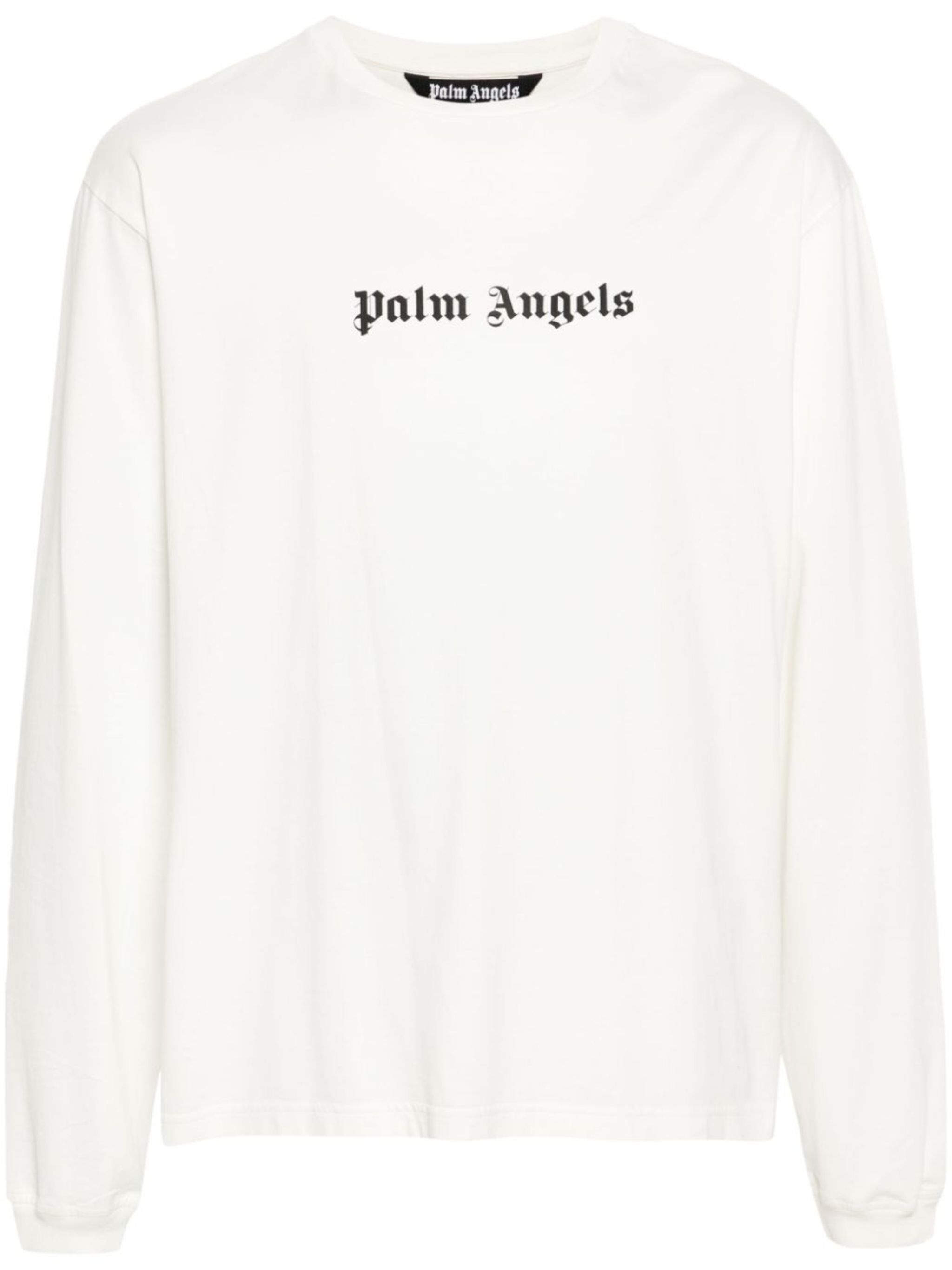 off-white/black cotton jersey texture logo print to the front crew neck long sleeves ribbed cuffs straight hem Size & Fit Model Measurements: Height: 1.86 m Bust/Chest: 91.0 cm Hips: 93.0 cm Waist: 72.0 cm Model wears size L Fabric and Care Designer Style ID: PMAB046S24JER0010310 Designer Colour: 0310 WHITE BLACK Composition: Cotton 100% Washing instructions: Machine Wash Made in Italy