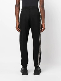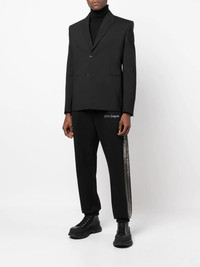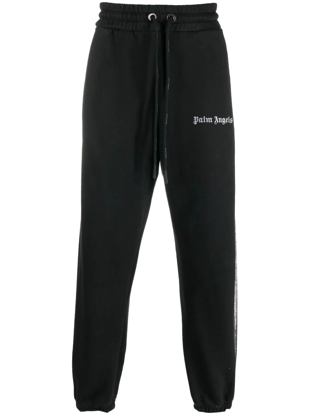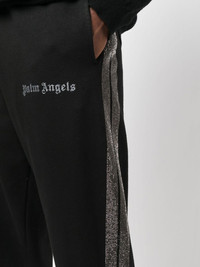 logo-print cotton track pants Distinctive due to the silver-tone side-stripe detailing, these black track pants from Palm Angels testify to the brand’s laid-back aesthetic. Constructed from soft cotton, they feature an elasticated waistband and cuffs for added comfort. Made in Italy Composition Outer: Cotton 100%, Polyester 100%, Polyurethane 100%, glass 90%, Polyamide 10% Lining: Cotton 100% SIZE & FIT Model measurements Height 6 ft 2 in(1.88 m) Bust/Chest 36.61 in(93 cm) Hips 35.82 in(91 cm) Waist 27.95 in(71 cm) FittingInformation This piece fits true to size. We recommend you get your regular size Cut for a slim fit Made with a mid-weight fabric Washing instructions Hand Wash