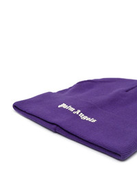 logo-print knit beanie logo-print knit beanie from PALM ANGELS featuring dark purple, wool blend, logo print at the chest, knitted construction and turn-up hem. Made in Italy Composition Acrylic 50%, Wool 50%