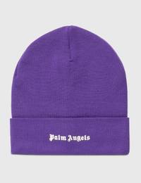 - Palm Angels - Classic Logo Beanie - Textured logo at front - Roll up cuffs - Color: Purple/White - Material: 100% Cotton - See more Beanies, Hats and Accessories SIZING Approximate dimensions: - Crown Height: 24cm - Circumference: 46cm