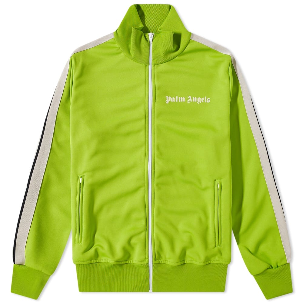 Add a bold - yet sporty-inspired look - to your wardrobe with this lime-green track jacket from Palm Angels. Crafted from a soft and lightweight fabric, it’s cut to a classic fit, then decorated with white stripes down each sleeve. You’ll also discover the brand’s instantly-recognisable logo on the chest for a signature finish. - 100% Polyester - High-Neck - Zip Closure - 2 Side Zip Pockets - Striped Details - Printed Branding - Made in Italy