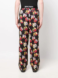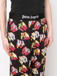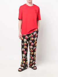 logo-print straight-leg trousers black/multicolour all-over logo print logo waistband front button fastening straight leg two side slit pockets rear welt pocket Made in Italy Composition Viscose 100%, Polyamide 56%, Spandex/Elastane 22%, Polyester 22% SIZE & FIT Model measurements Height 6 ft 2 in(1.89 m) Bust/Chest 39.76 in(101 cm) Hips 37.4 in(95 cm) Waist 29.92 in(76 cm) FittingInformation This piece fits true to size. We recommend you get your regular size Designed for a slim fit at the waist and loose over the leg Made with a lightweight non-stretch fabric Washing instructions Dry Clean Only