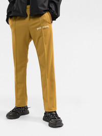 logo-print straight-leg trousers Designed by Californian brand Palm Angels, these trousers boast a comfortable elasticated waistband and straight-leg cut - a relaxed style that contrasts the pressed crease, a classic tailoring detail. Made in Italy Composition Outer: Polyester 100% Lining: Polyester 100% SIZE & FIT Model measurements Height 6 ft 2 in(1.89 m) Bust/Chest 36.22 in(92 cm) Hips 37.79 in(96 cm) Waist 29.52 in(75 cm) FittingInformation This piece fits true to size. We recommend you get your regular size Designed for a slim fit at the waist and loose over the leg Made with a mid-weight fabric